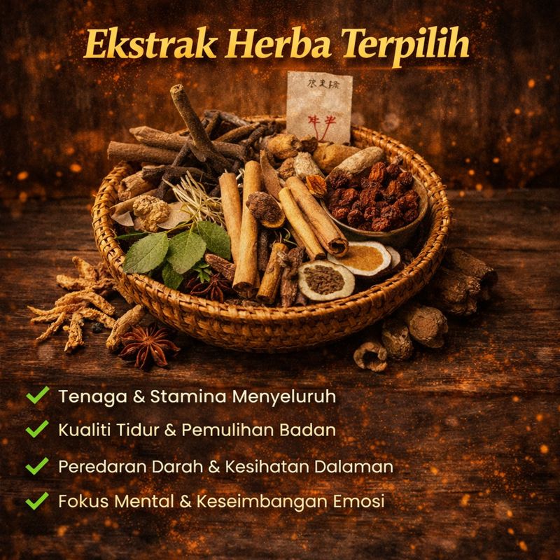 Formulasi 100% herba semula jadi, membantu sokong imun dan tenaga badan tanpa bahan kimia berbahaya.