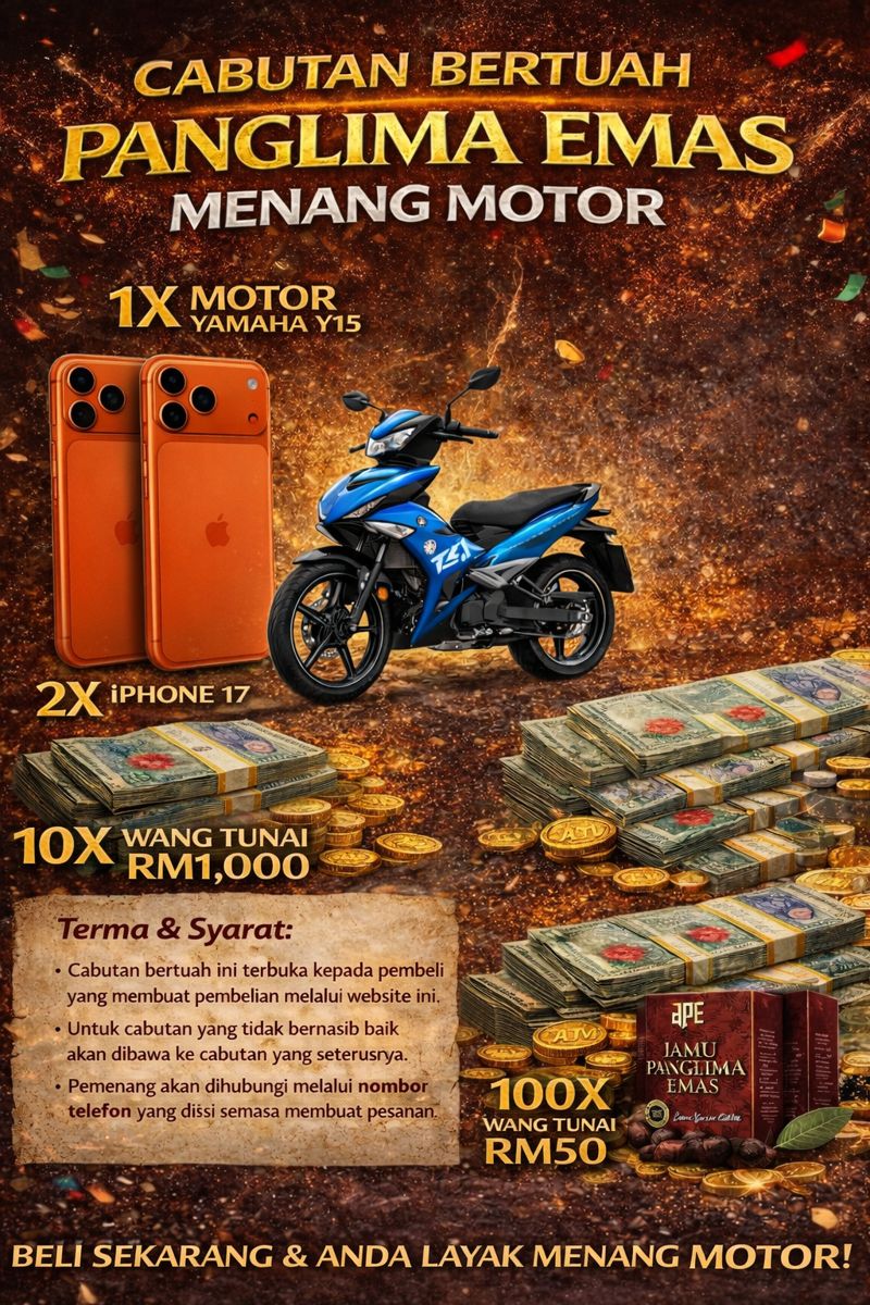 Produk ini BUKAN ubat-ubatan dan BUKAN bertujuan untuk merawat, menyembuhkan atau mencegah sebarang penyakit. Ia adalah MAKANAN TAMBAHAN yang dirumus daripada bahan herba semula jadi untuk sokongan tenaga dan kesihatan tubuh badan.